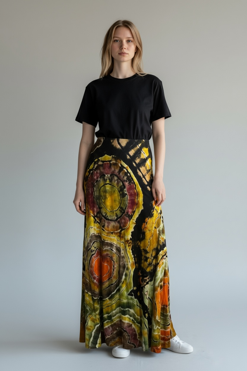 Women’s Long Tiered Tie-Dye Skirt – Hippie Boho Style in Teal & Violet